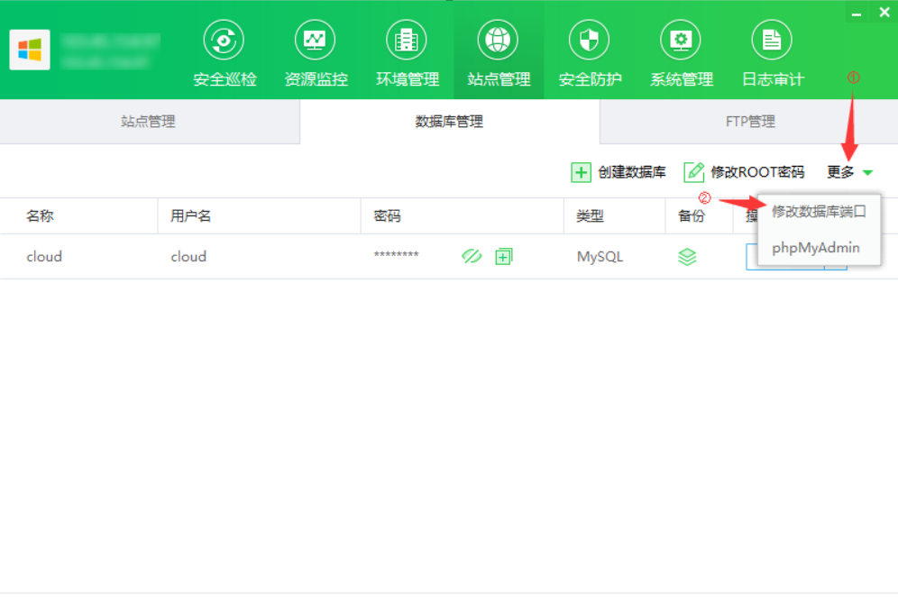 1. 依次点击:更多 -> 修改数据库端口