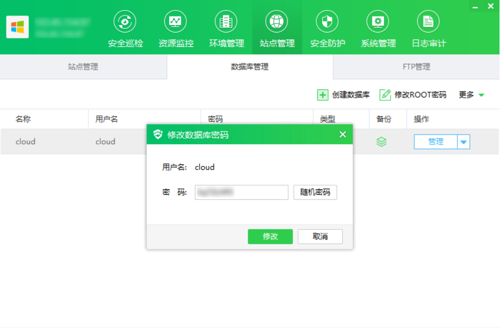 ② 点击“改密”,显示修改数据库密码弹框