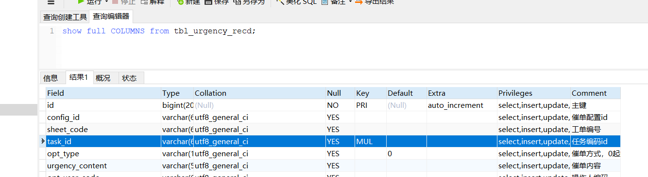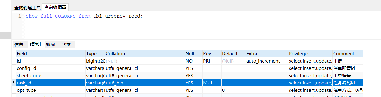 tbl_urgency_recd表字段task_id字符集为:utf8_general_ci。