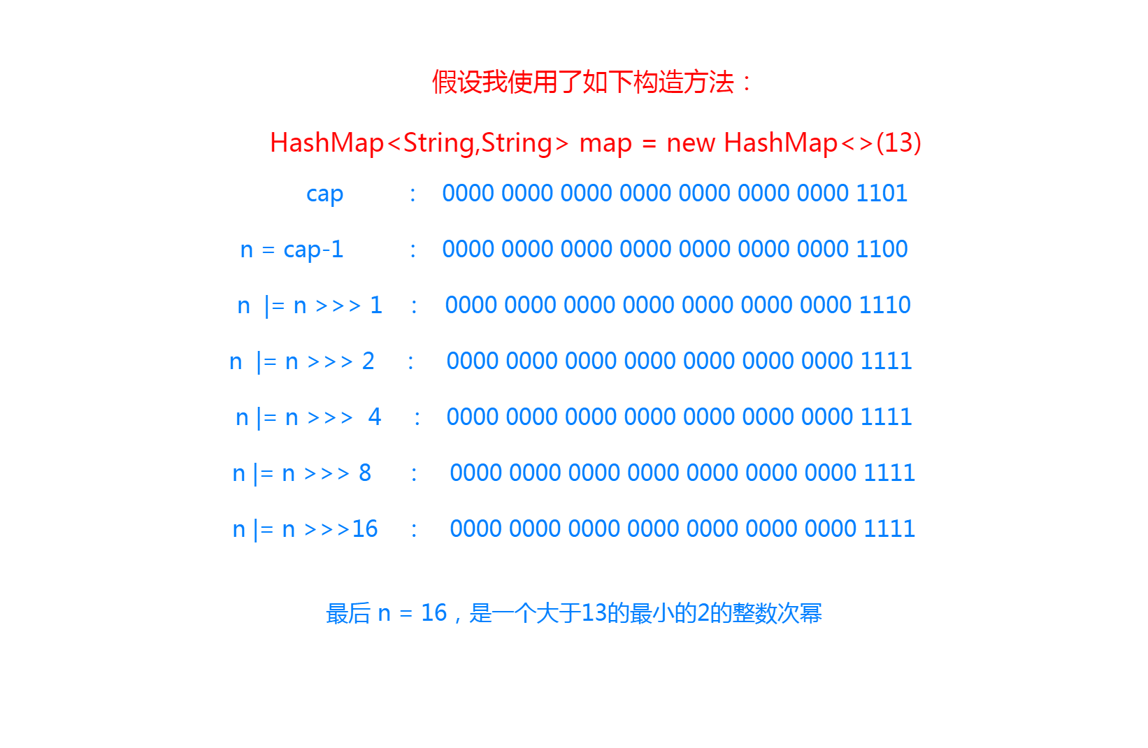 // 此方法是将给定的容量扩大到恰好刚刚大于给定容量的2的整数次幂倍,方便以后定位元素位置