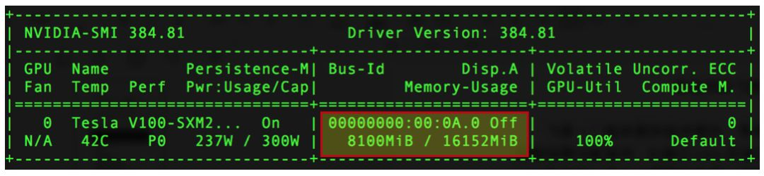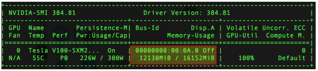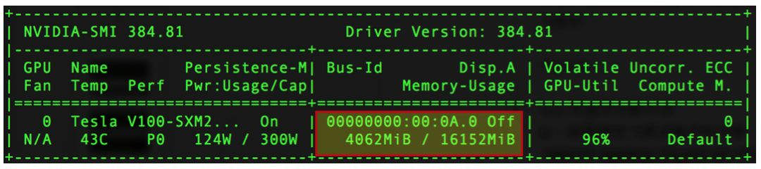 训练任务启动后,运行nvidia-smi命令,观察GPU显存的占用情况。