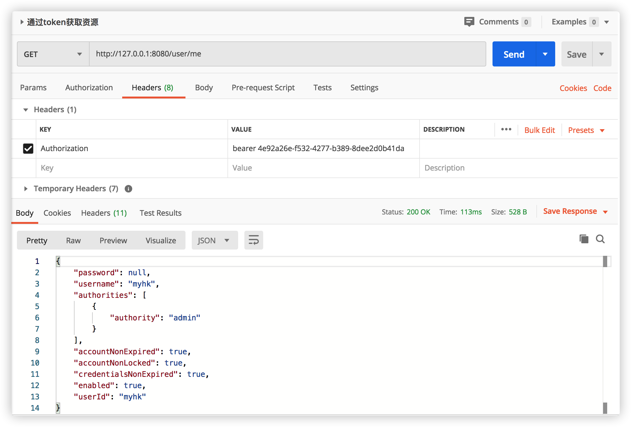点击发送后便可以成功获取到令牌:
