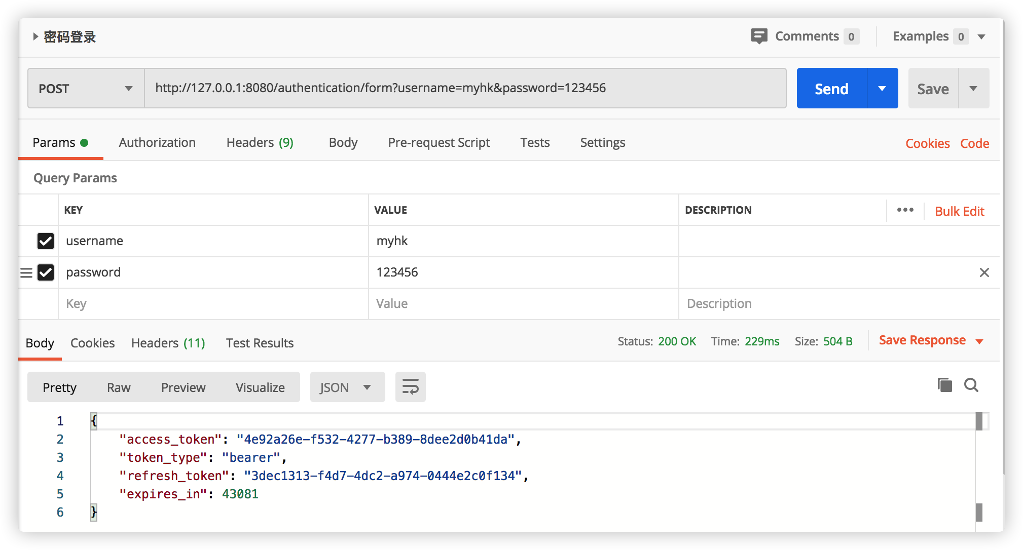 改造之前密码登录返回标准的OAuth2登录成功报文