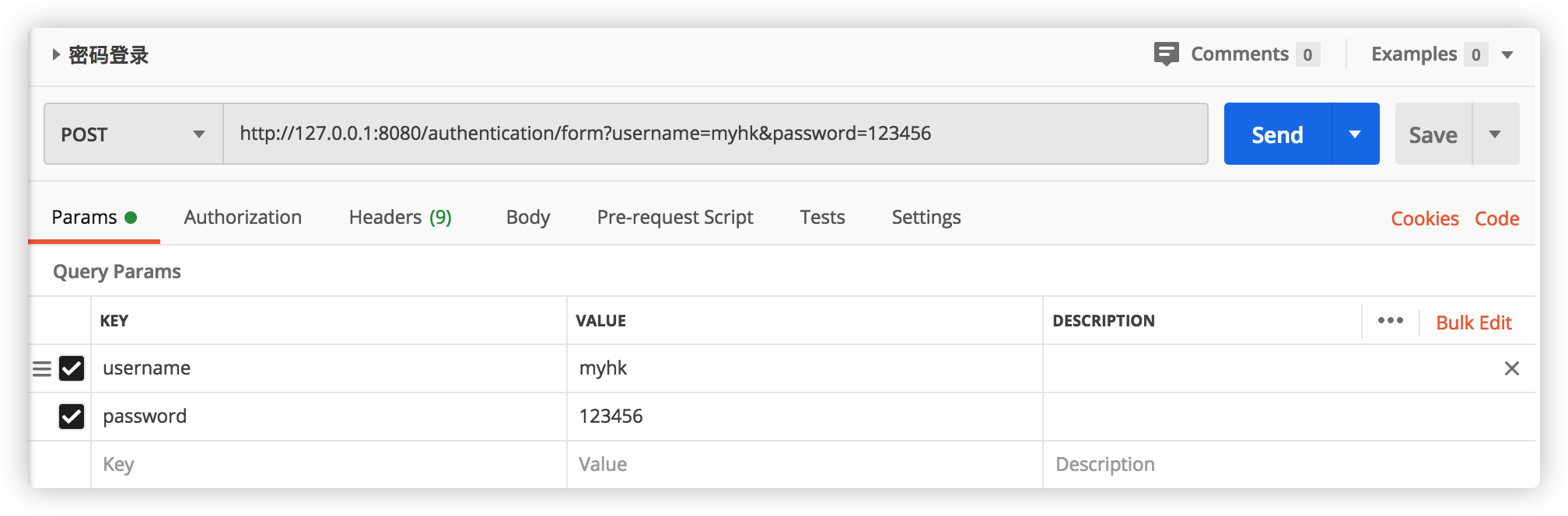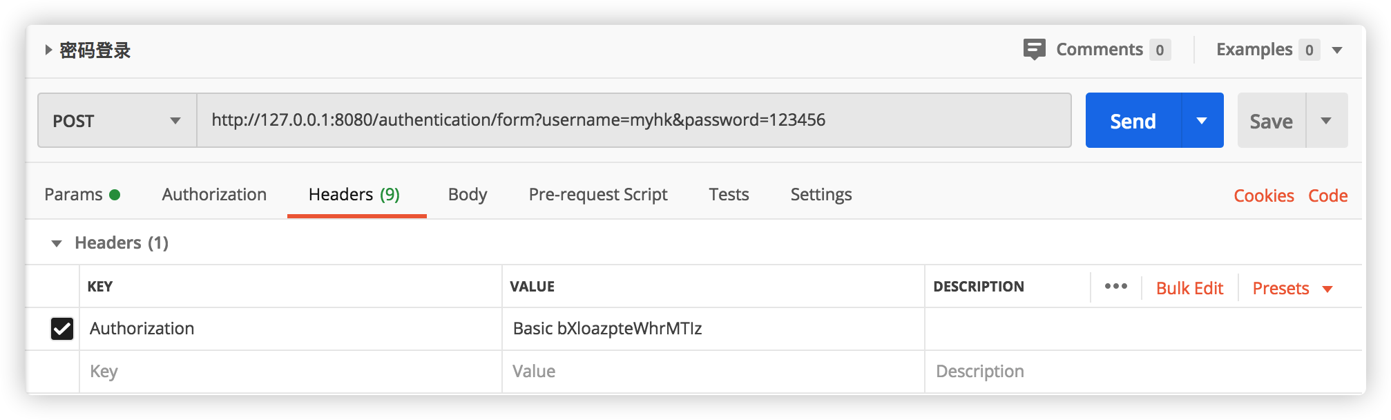 启动项目,使用postman发送登录请求http://127.0.0.1:8080/authentication/form: