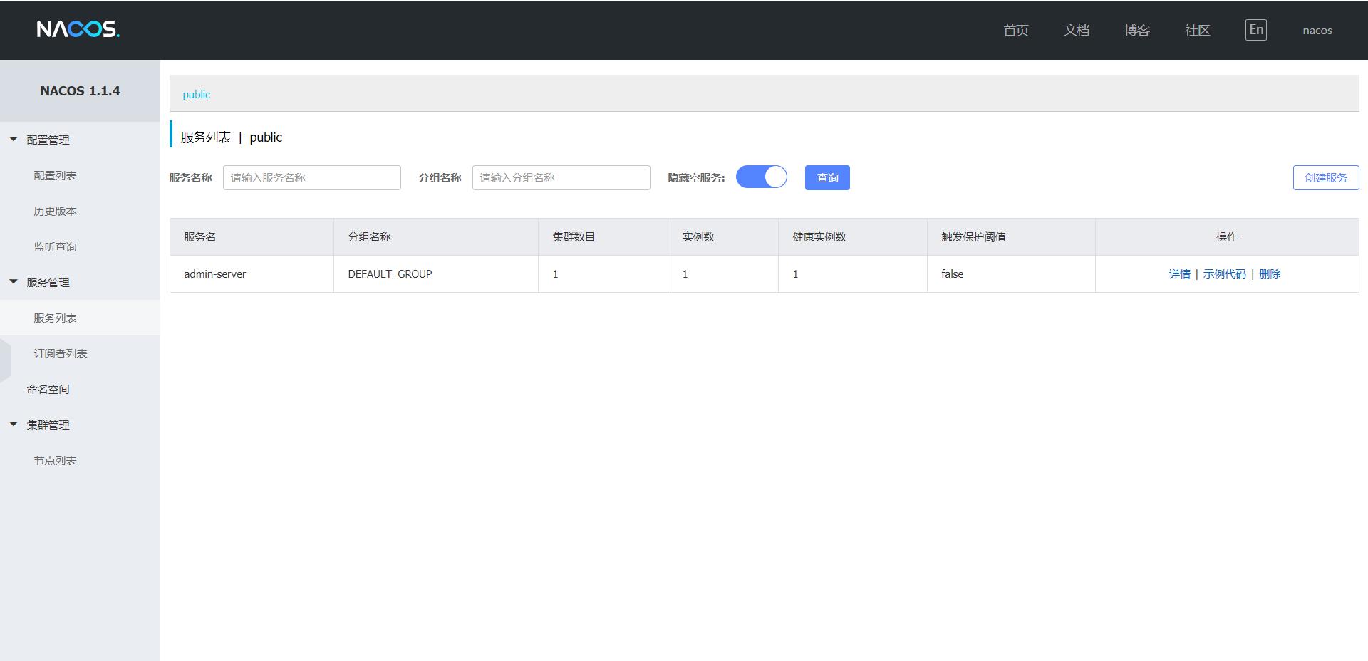 查看Nacos界面: