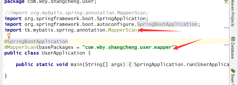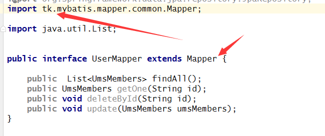 需要使用tk mapper(通用mapper)的扫描器,否则调用通用mmaper的方法时,会报找不到通用mapper方法的错误