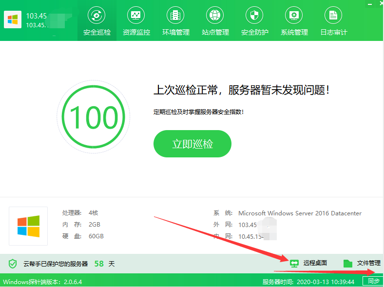 云帮手官网目前是也完全免费的,对于不想买付费软件的运维人来说是也是一个很好的选择,自带远程连接功能,无需再通过其他工具进行远程桌面控制,软件集成Windows系统RDP远程桌面协议、Linux系统SSH远程登录协议,所以系统方面没有什么限制,只需要填写服务器的一些基本信息和密码就可以进行远程操控了,不用再去下载什么别的工具包,很简单。云帮手不仅仅可以远程登录,还包括服务器安全巡检、资源监控、批量管理、日志审计、站点管理等等功能,基本功能比较齐全。