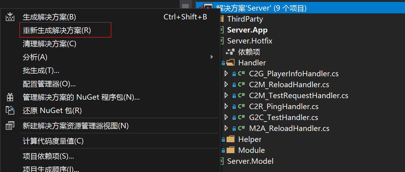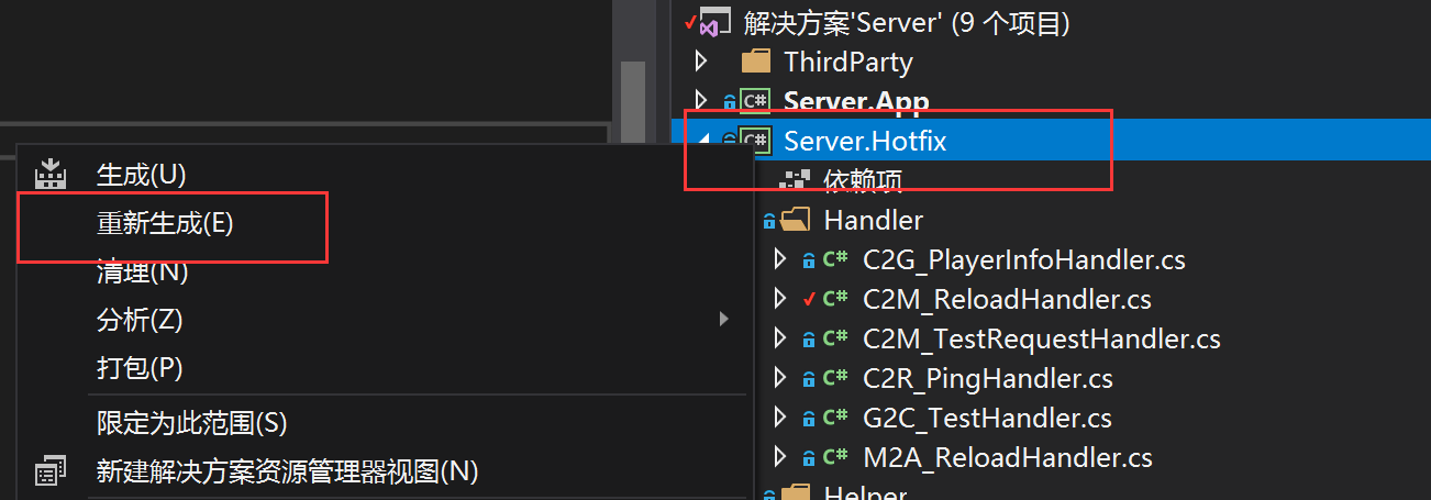 4.然后选择在VS2017的解决方案资源管理器,选择重新生成hotfix