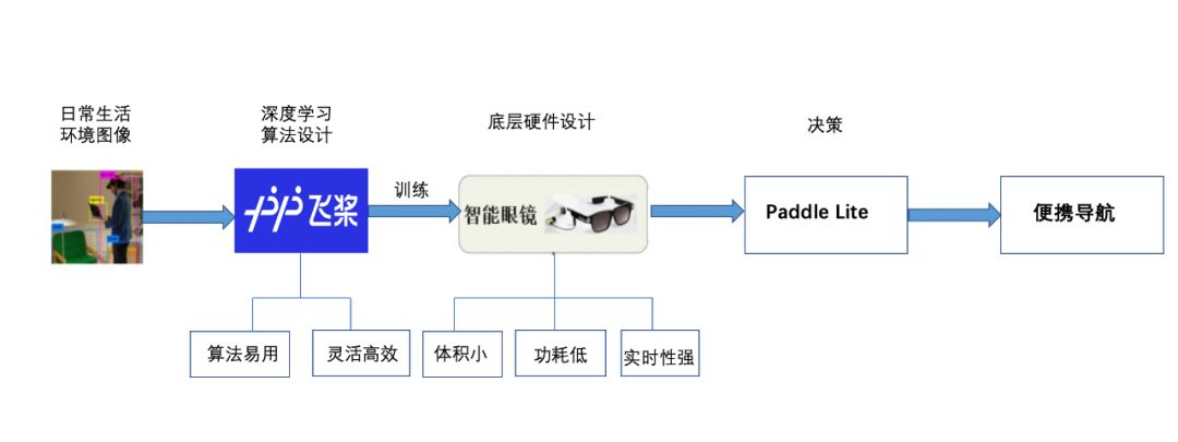 图3 利用飞桨和智能眼镜帮助视障人士进行智能导航