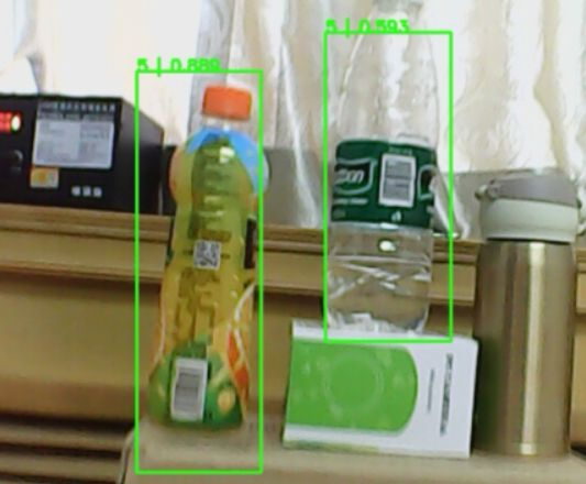 图中的方框标识出的物体是通过非极大值抑制进行输出的结果,也即取出SSD网络判断类型置信度最大的方框作为判断结果,实验结果表明,我们所设计的视觉辅助智能眼镜系统可以正确识别出所要检测的物体和目标。