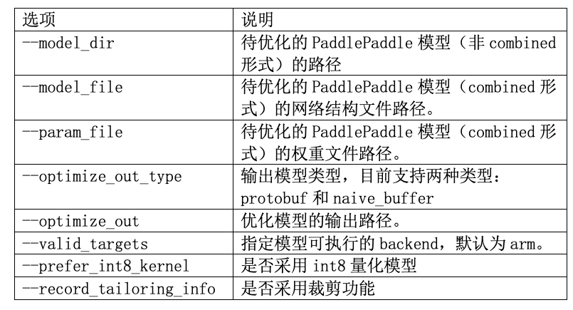 我们采用百度提供的opt对PC端的飞桨模型转化为移动端的Paddle Lite模型,在命令行中输入以下代码运行opt进行模型转换: