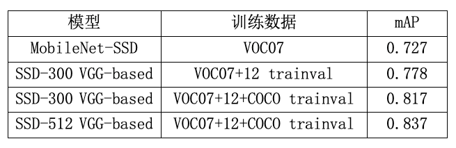 我们将设计好的眼镜系统进行性能评估,用于进行测试的物体识别的数据集由 VOC07 与我们自己拍摄的目标图像组成。目标检测的场景为视障人士日常生活中会遇到的相关场景进行识别,在本系统前期进行深度学习测试的过程中,采用飞桨所搭建的几种 SSD 卷积神经网络分别具有以下几种测试结果: