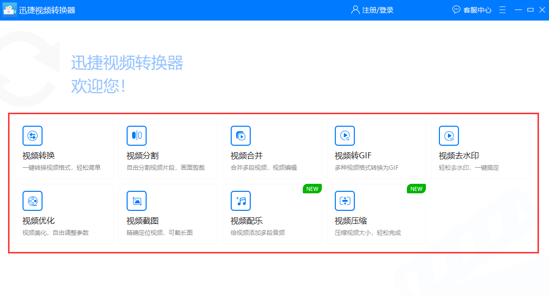 当保存好kux视频文件后可以用一些支持kux转mp4的视频转换器进行转换,在转换前发现转换器的初始界面有视频转换、视频分割及视频合并等九项视频编辑方式,任意选择一种编辑方式即可。
