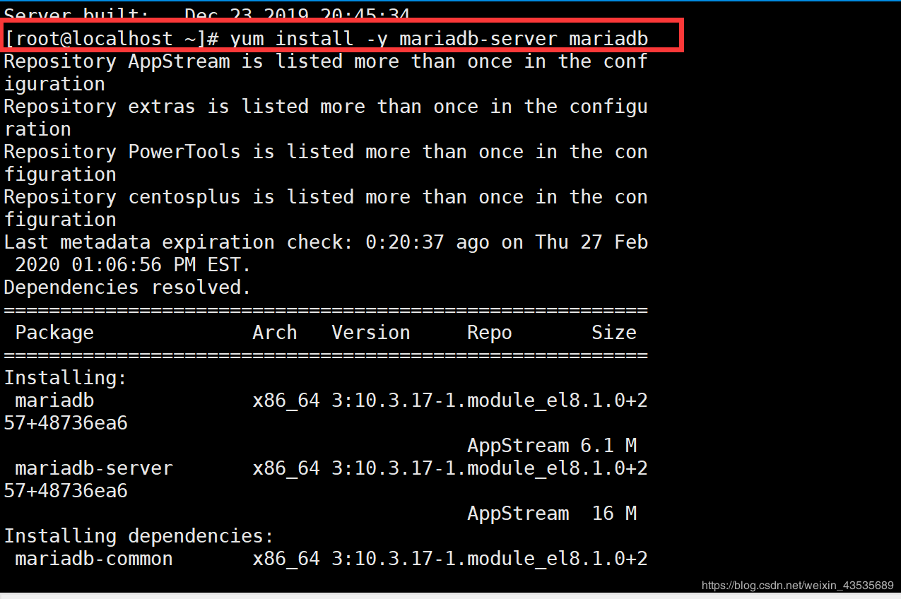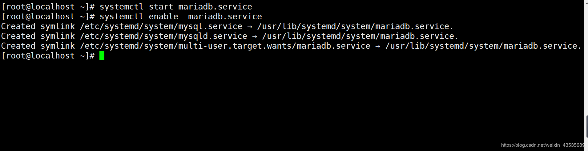 [root@localhost ~]# yum install -y mariadb-server mariadb
