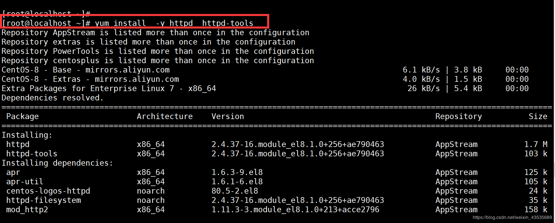 [root@localhost ~]# yum install -y httpd httpd-tools