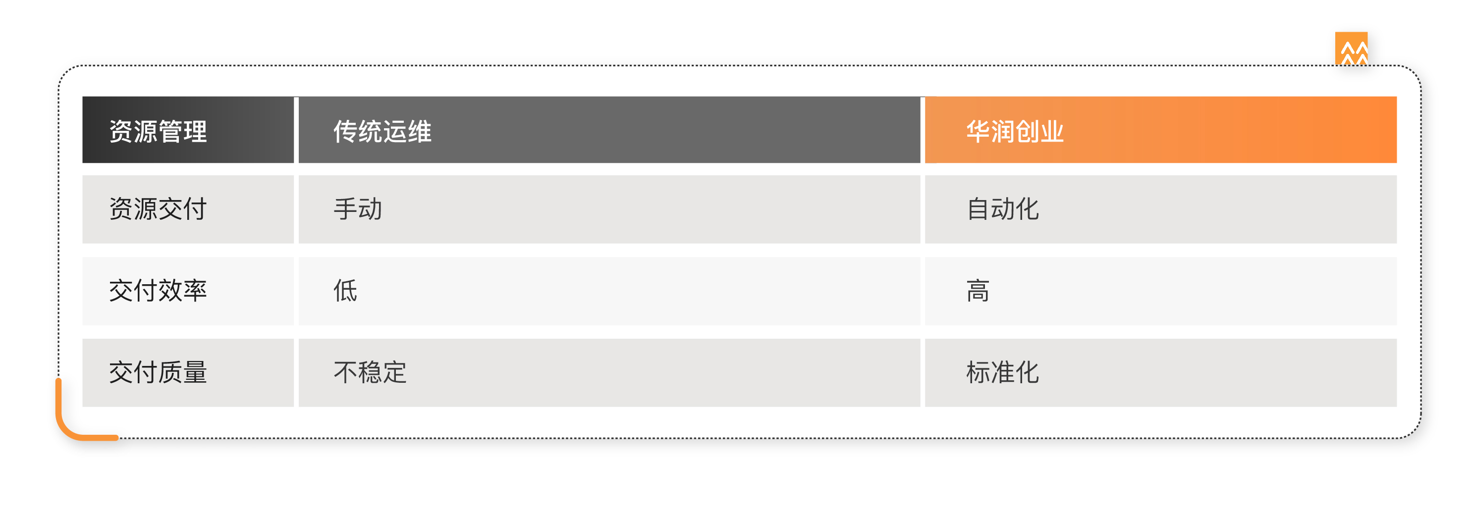 华润创业信息集中、管控集中、服务集中的战略价值体现在资源管控上。信息团队可以在搭建的蓝鲸云管平台上的云资源管理门户中统一使用、管理云资源,经由一键申请审批,触发资源交付流程,自动化、标准化的资源交付即可完成。自动化提升了资源交付效率和质量,且因为跨资源领域的交付工单流程合并为一个工单,降低了配置的人力成本。如今在交付上只需要负责应用的代码逻辑,应用系统的后台资源如数据库、中间件等资源便可以一键交付,过往需要三天对接各个后台的服务器,现在仅需30分钟。
