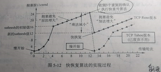 ②快恢复:当发送端收到连续三个冗余ACK时,把ssthresh设为之前的一半后,不执行慢开始,而是直接使cwnd从ssthresh处以每次递增1的速率增加。
