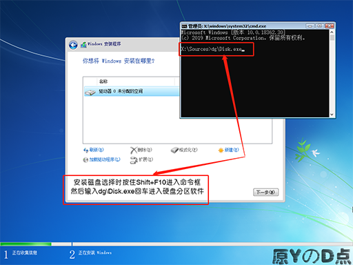 7. 系统添加UEFI引导,并在磁盘选择增加了从cmd命令启动启动DiskGenius软件,可以进行UEFI+GPT格式安装。