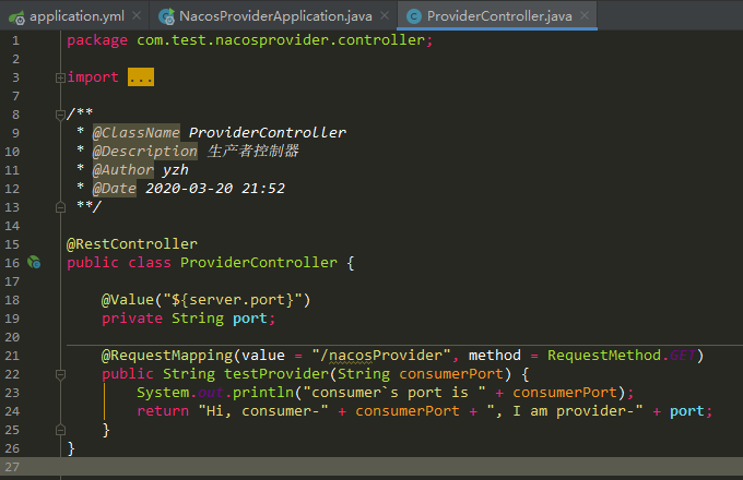 下面附上我写的一个简单 Nacos 的Demo,与 SpringCloud 整合的:先看Nacos-Provider端: