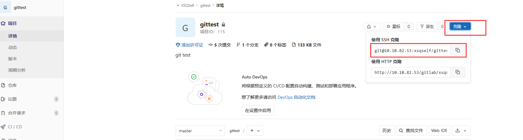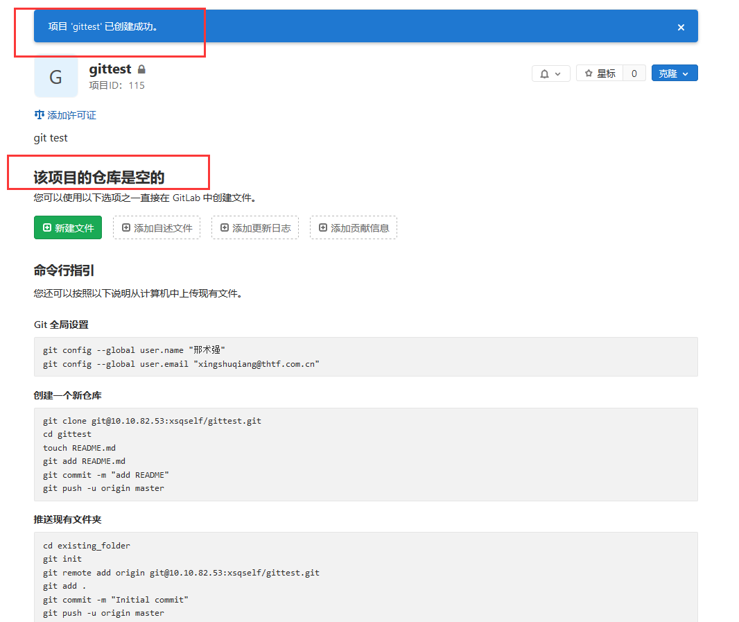git clone git@10.10.82.53:xsqself/gittest.git