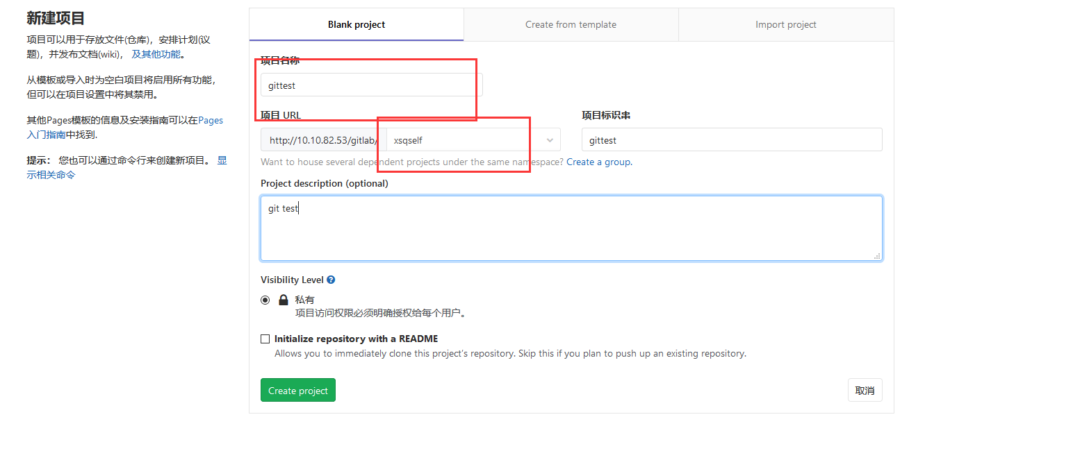 1. 在gitlab 上创建仓库