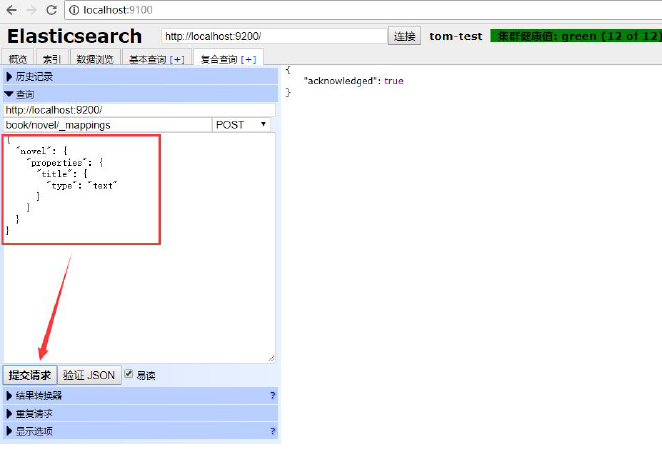 - 方式二:创建结构化的索引,输入book/novel/_mappings(如下图所示),