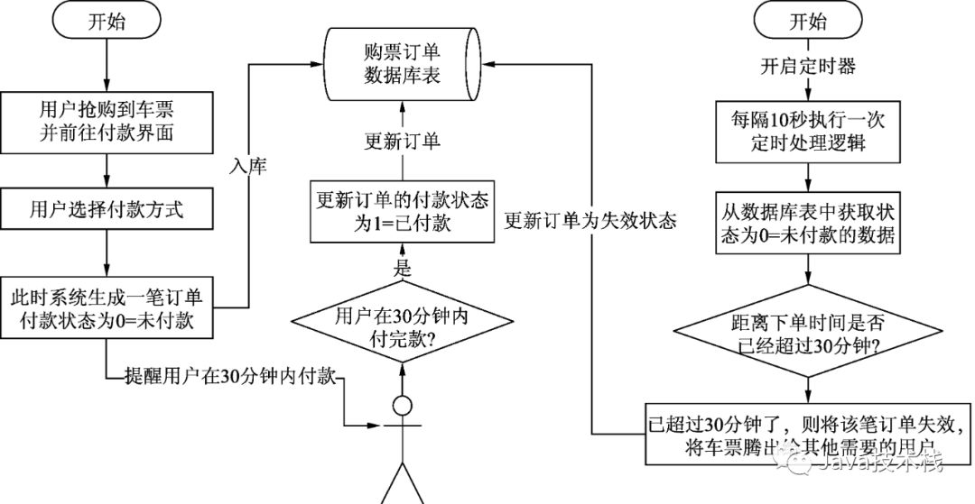 图6 抢票成功后30分钟内未付款的传统处理流程