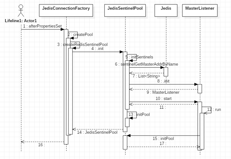 图2 JedisConnectionFactory的afterPropertiesSet时序图