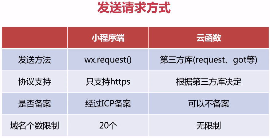 一种是在小程序端发送请求,另一种是我们可以在云函数中发起请求。