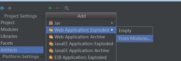 4.选择Artifaces的exploded war包 (如果是之前点击右下角系统的提示创建 就不用这样了)