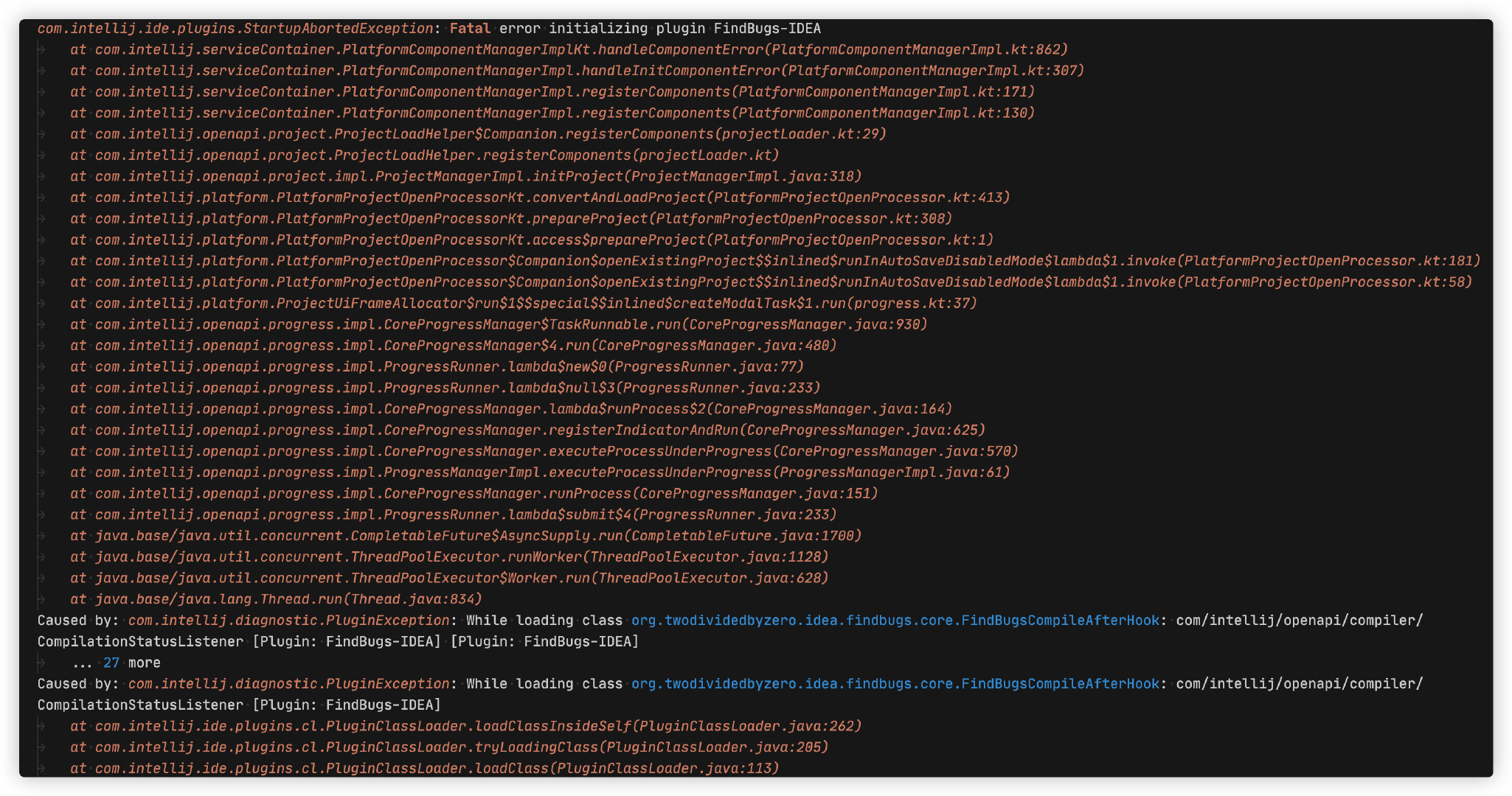 看到这里,初步怀疑 FindBugs-IDEA 暂不适配最新版本 IDEA,从而导致项目工程打不开。