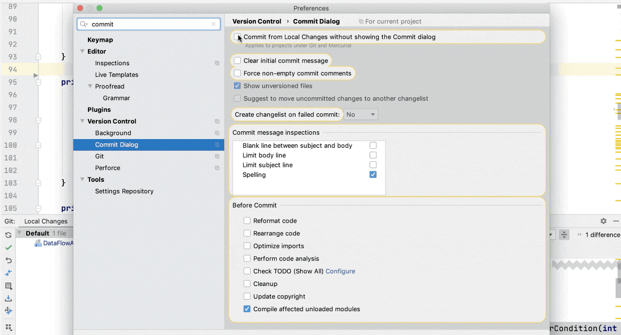 New Commit tool window