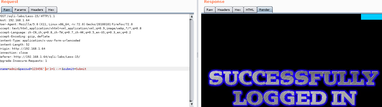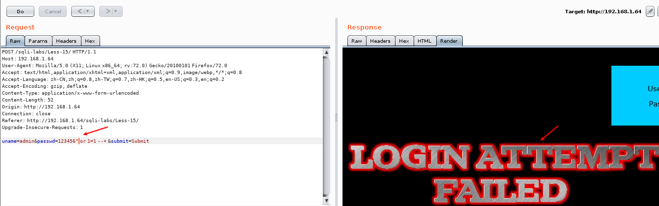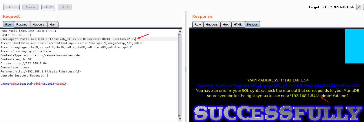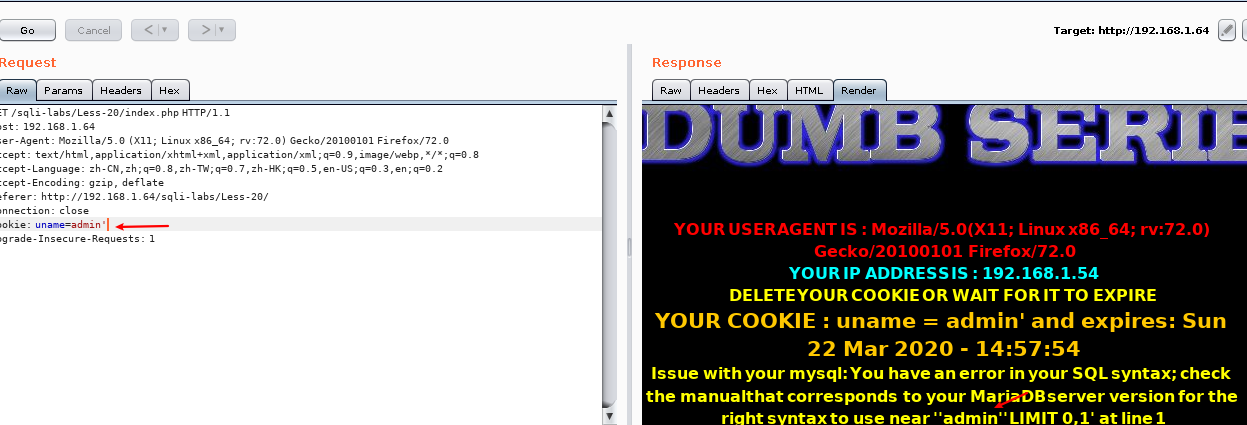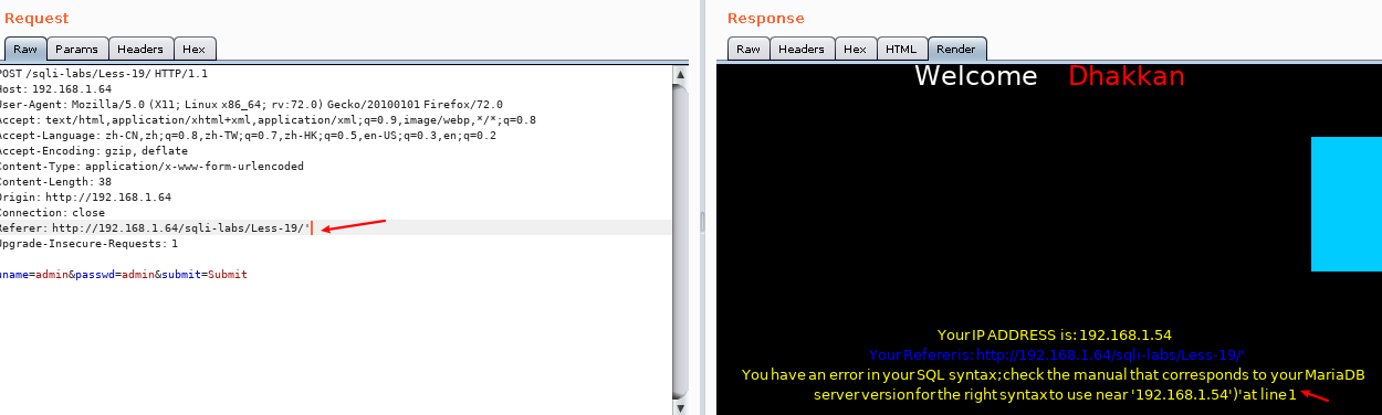 Referer: http://192.168.1.64/sqli-labs/Less-19/'