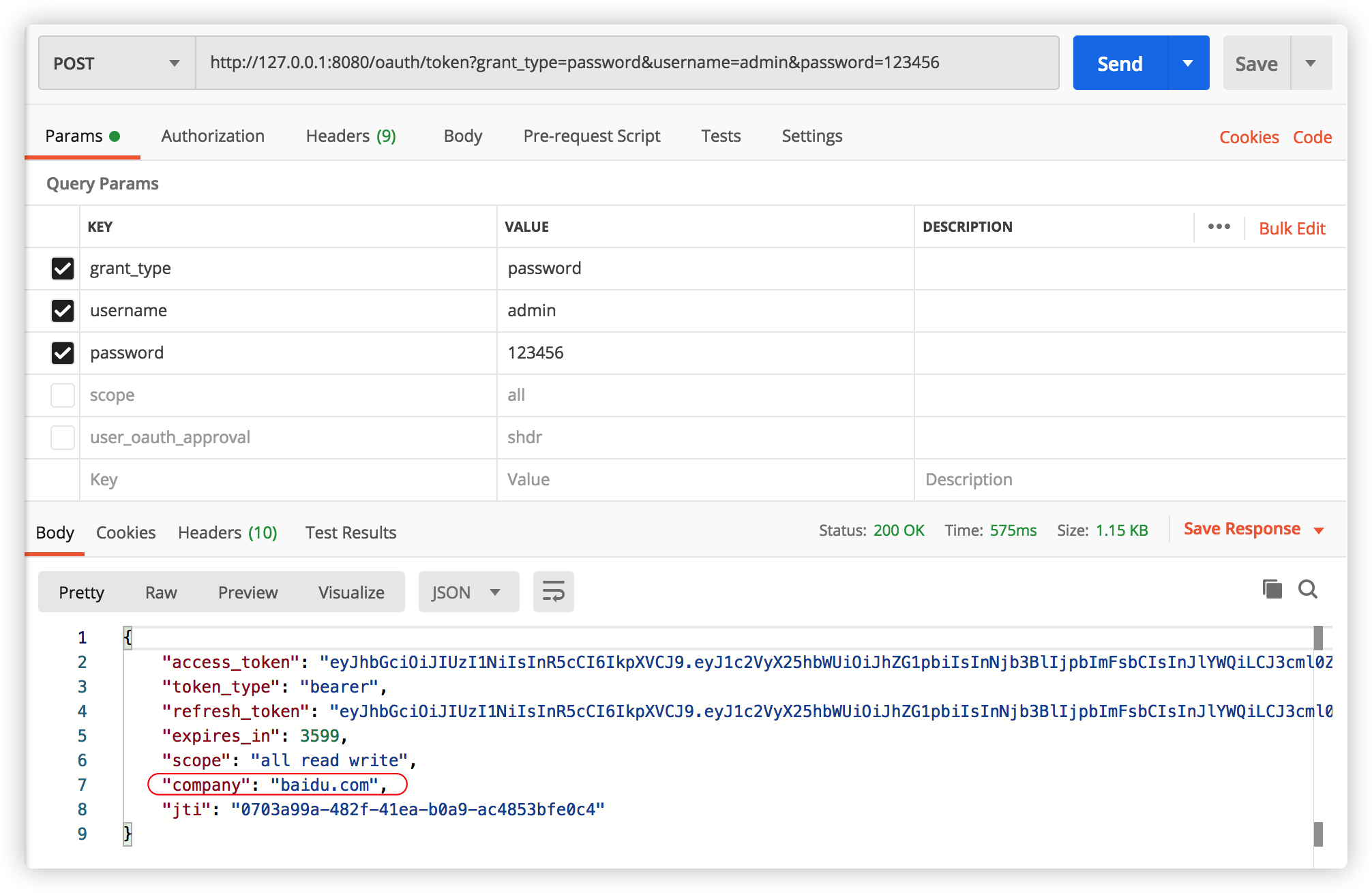 我们在Token中添加了"company", "baidu.com"信息。然后在TokenStoreConfig里注册该Bean: