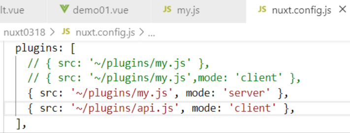 - 步骤二:创建 ~/plugins/api.js 文件,并在nuxt.config.js文件进行配置(仅客户端可用)