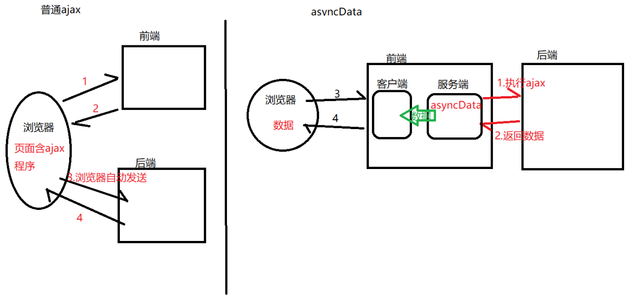 asyncData中的ajax将在“前端服务端执行”,在浏览器看到是数据,而不是ajax程序。
