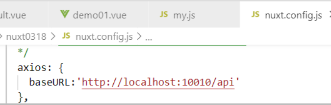 - 步骤一:前提,修改nuxt.config.js,编写axios baseURL