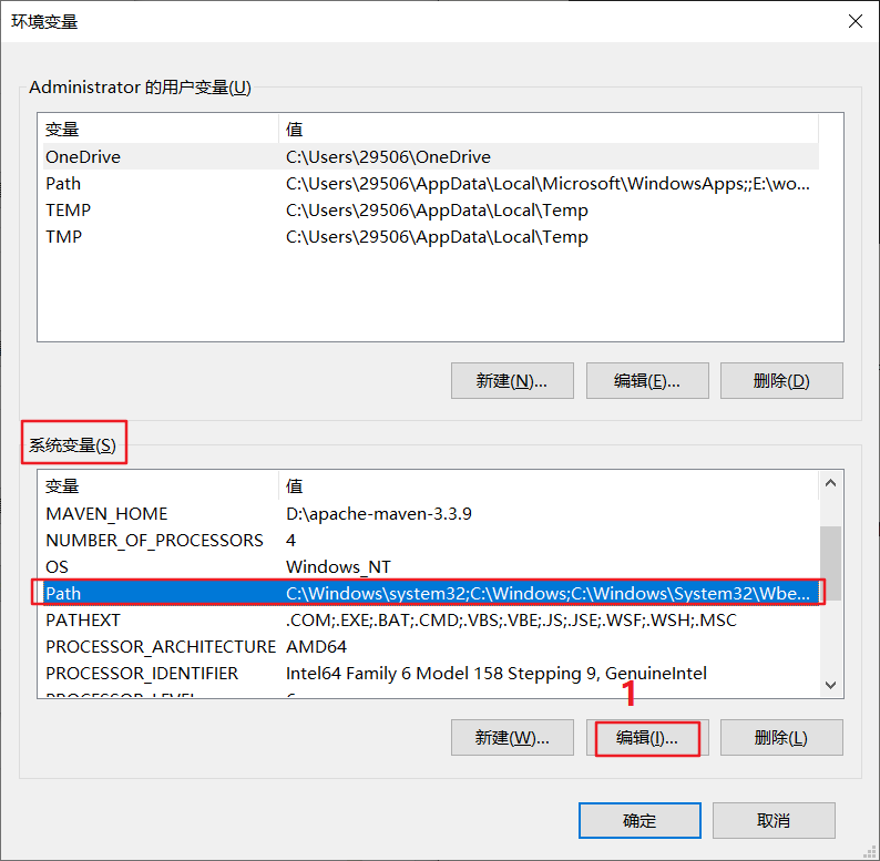 在系统变量中找到【Path】,选择并点击下方的【编辑】