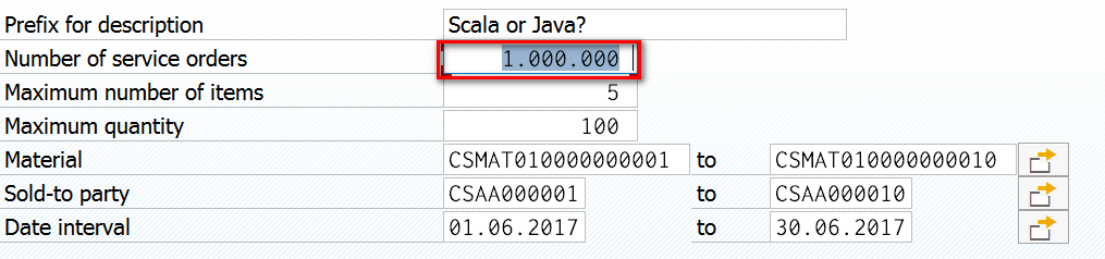 On Monday, I adapt Carsten's test report. For the original implementation, if we specify a very large number of Service Orders to be created, say 1 million: