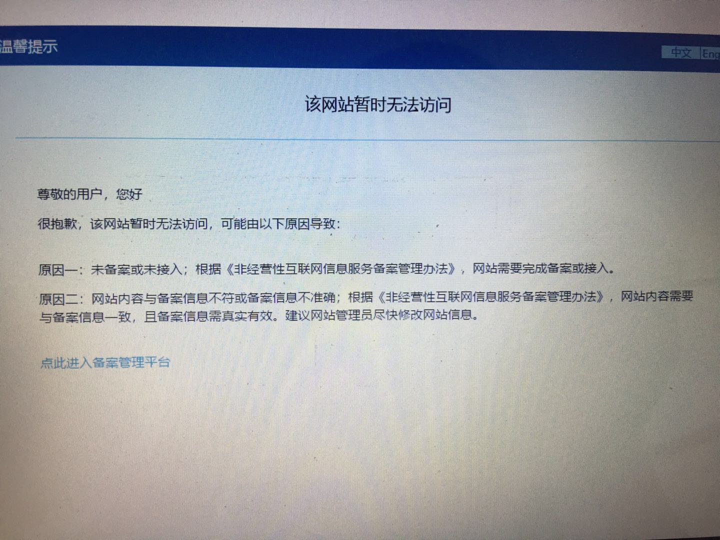 他们认为是域名没有备案,在网络或淘宝上购买一个已备案域名就可以了,可以后面发现够买以后备案号,备案信息可以查到,但是网站就是显示如图所示,打不开,我来告诉大家原因。