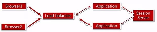 把 session 做成了一个 session 服务器,比如可以使用 redis 实现。这样每个用户访问到应用服务器,其 session 信息最终都存到 session server 中,应用服务器也是从 session server 中去获取 session。