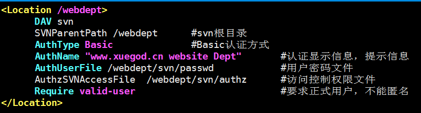 [root@rrr ~]# vim /etc/httpd/conf.d/subversion.conf //末尾添加这些行
