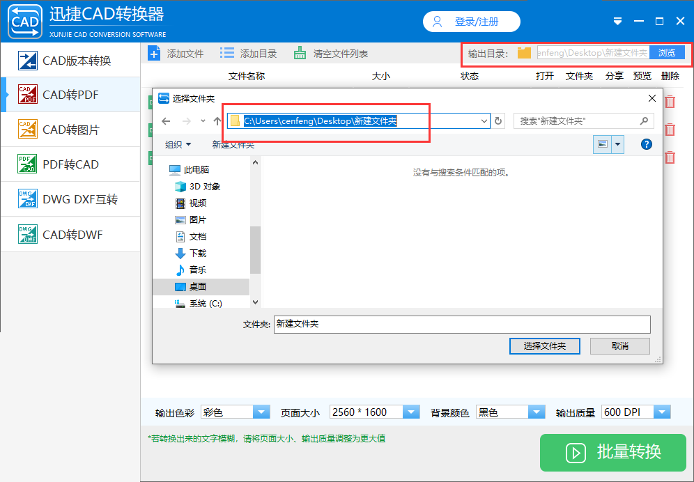 当转换进度条到达100%后就表示已经把cad转换pdf了,而后到达输出目录指向的位置即可查阅转换后的pdf文件。如果有需要还可以在这里自定义文件保存到电脑的位置。