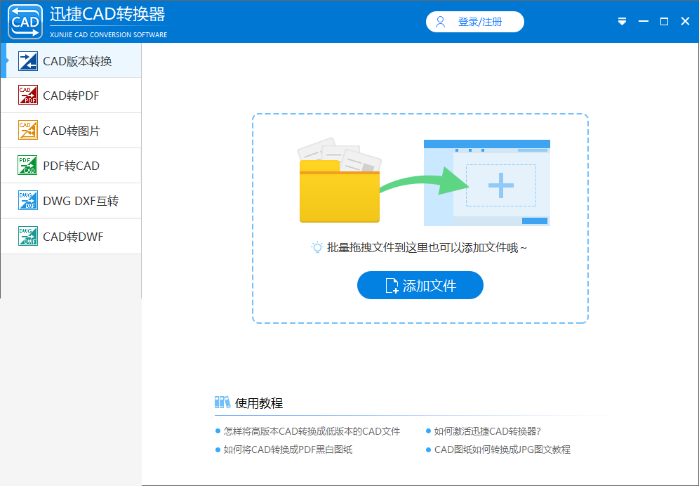 进入到cad转pdf界面后把准备好的cad文件导入到右侧转换栏中,导入的方式分为按钮导入和拖拽导入两种,其中拖拽的方式导入文件通常会比按钮添加的方式快。
