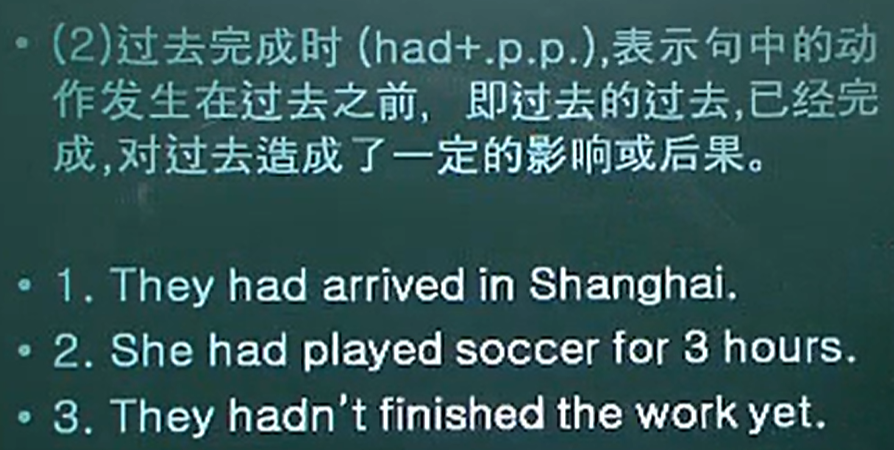 过去完成时,had+过去分词,表示句中的动作发生在过去之前,即过去的过去,已经完成,对过去造成了一定的影响或后果