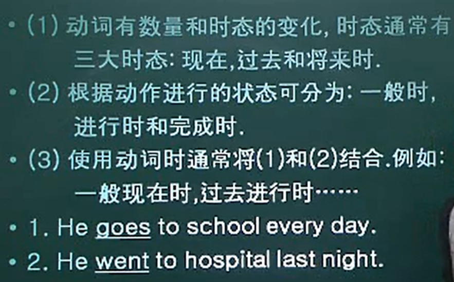 1.动词有数量和时态的变化,时态通常有三大时态:现在,过去和将来时
