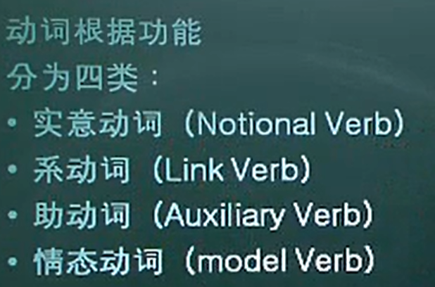 动词根据功能分为四类:实意动词,系动词,助动词,情态动词