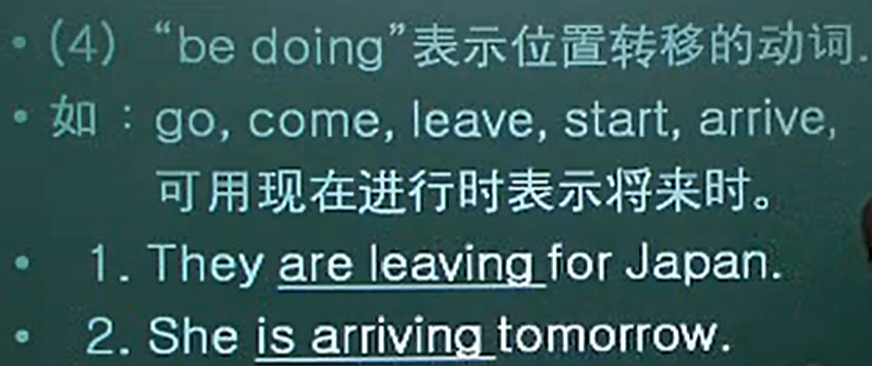 be doing 表示位置转移的动词,如:go,come,leave,start,arrive,可用现在进行时表示将来