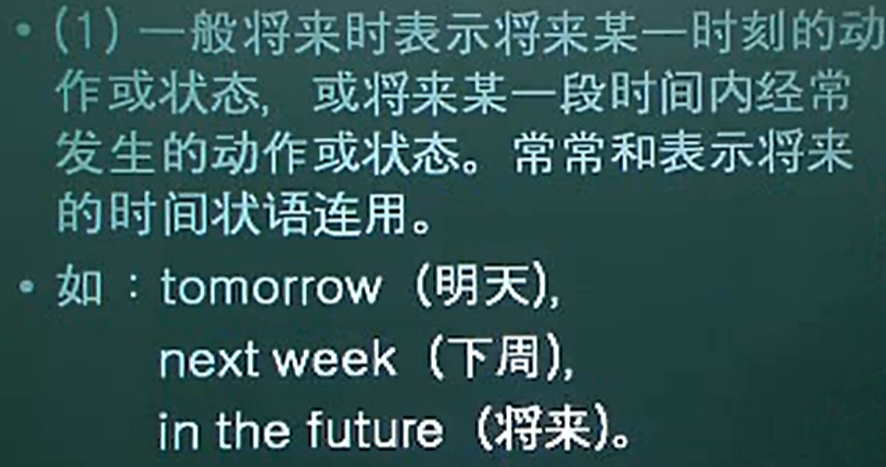 一般将来时表示将来某一时刻的动作或状态,或将来某一段时间内经常发生的动作或状态,常常和表示将来的时间状语连用。